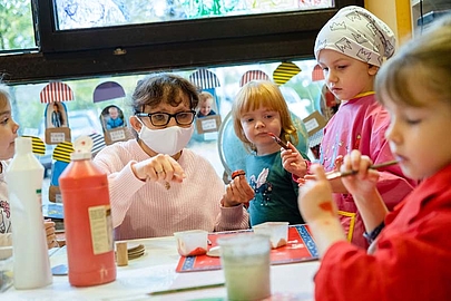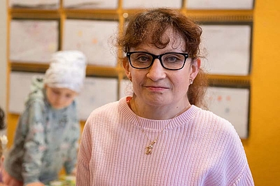 Marianne Marks begegnet den Mädchen und Jungen aus der Regenbogengruppe auf Augenhöhe. Im wahrsten Sinne des Wortes. Die 37-jährige Erzieherin ist kleinwüchsig und damit gerade mal so groß wie die älteren Kinder in der Kita Heilig Kreuz im Bad Homburger Stadtteil Gonzenheim. Seit elf Jahren, gleich nach Ausbildung und Anerkennungsjahr, ist Marianne Marks als Erzieherin in der katholischen Kindertagesstätte. Wenn sie beim Basteln, Spielen oder Vorlesen zwischen den Kindern sitzt, übersehen sie die Eltern manchmal – die Kita-Stühlchen sind für ihre Größe von 1,30 Meter genau passend.