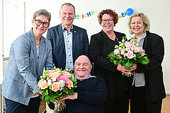 Kassel (lwv): Doppelter Amtswechsel beim Landeswohlfahrtsverband (LWV) Hessen: Susanne Selbert (SPD), seit 2018 an der Spitze des LWV, hat heute Susanne Simmler (SPD) als Nachfolgerin begrüßt und ihr für das Amt als Landesdirektorin die besten Wünsche mit auf den Weg gegeben. Der bisherige Erste Beigeordnete Dr. Andreas Jürgens (Bündnis 90/Die Grünen), seit 2012 in führender Position beim LWV, übergab seine Amtsgeschäfte an Ulrike Gote (Bündnis 90/Die Grünen). Komplettiert wird die neu formierte Verbandsspitze durch den hauptamtlichen Beigeordneten und Kämmerer Dieter Schütz (FDP). Die neue Landesdirektorin und die neue Erste Beigeordnete wurden für eine Amtszeit von sechs Jahren gewählt. Schütz war bereits im vergangenen Sommer in seinem Amt bestätigt worden und begann seine zweite Amtszeit am 1. Januar 2024. Die ausscheidenden Selbert und Dr. Jürgens kandidierten für keine weitere Amtszeit und verabschieden sich in den Ruhestand.
