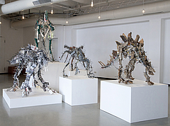 Julia Krause Harder (geb. 1973) baut Dinosaurier-Skulpturen aus Textil, Metall und gefundenem Material in unterschiedlichen Größen, von ganz klein bis raumfüllend. Sie bilden echte Ausgrabungsfunde nach. Die autistische Künstlerin betrachtet ihre Arbeit als Forschungsprojekt.